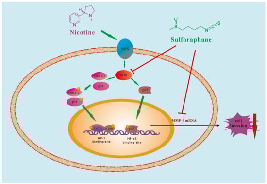 Li S, Khoi PN, Yin H, Sah DK, Kim N-H, Lian S, Jung Y-D. Sulforaphane Suppresses the Nicotine-Induced Expression of the Matrix Metalloproteinase-9 via Inhibiting ROS-Mediated AP-1 and NF-κB Signaling in Human Gastric Cancer Cells. International Journal of Molecular Sciences. 2022; 23(9):5172. https://doi.org/10.3390/ijms23095172