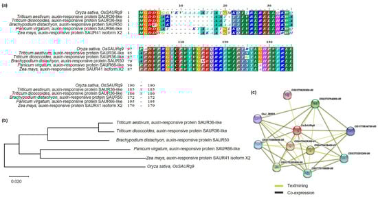 2.5. Phylogenetic Tree and Homology Sequence Analysis of OsSAURq9