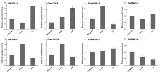 Expression profiles of FaMAPK genes at different fruit developmental stages.