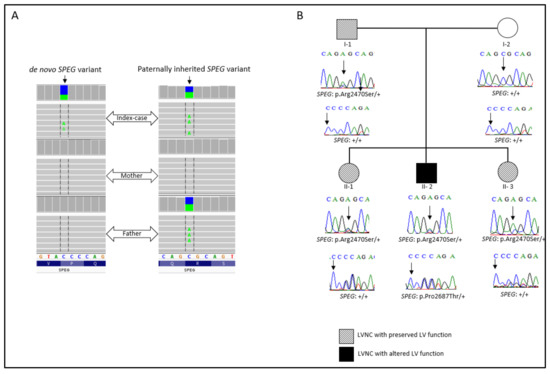 APA StyleJaouadi, H., El Louali, F., Wanert, C., Cano, A., Ovaert, C., & Zaffran, S. (2022). Dilated-Left Ventricular Non-Compaction Cardiomyopathy in a Pediatric Case with SPEG Compound Heterozygous Variants. International Journal of Molecular Sciences, 23(9), 5205. https://doi.org/10.3390/ijms23095205