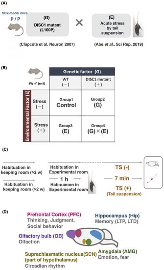 - Clapcote, S.J.; Lipina, T.V.; Millar, J.K.; Mackie, S.; Christie, S.; Ogawa, F.; Lerch, J.P.; Trimble, K.; Uchiyama, M.; Sakuraba, Y.; et al. Behavioral phenotypes of Disc1 missense mutations in mice. Neuron 2007, 54, 387–402. [Google Scholar] [CrossRef] [PubMed] [Green Version]