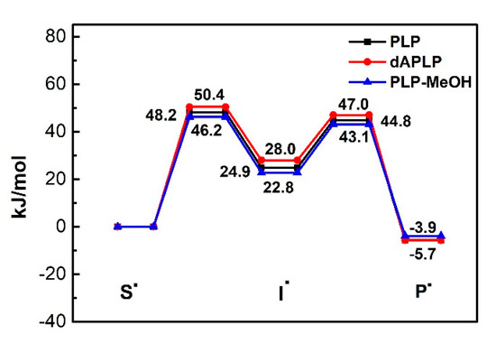 - Fernandes, H.S.; Ramos, M.J.; Cerqueira, N.M.F.S.A. The Catalytic Mechanism of the Pyridoxal-5′-phosphate-Dependent Enzyme, Histidine Decarboxylase: A Computational Study. Chem. Eur. J. 2017, 23, 9162–9173. [Google Scholar] [CrossRef]