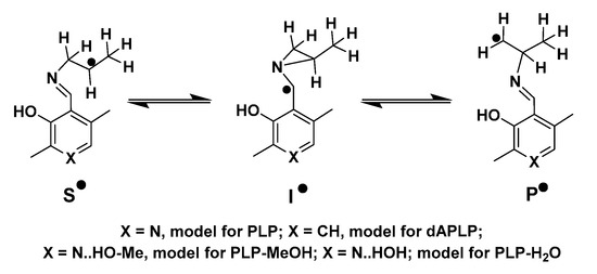 - Maity, A.N.; Ke, S.C. 4′-CyanoPLP presents better prospect for the experimental detection of elusive cyclic intermediate radical in the reaction of lysine 5,6-aminomutase. Biochem. Biophys. Res. Commun. 2015, 457, 161–164. [Google Scholar] [CrossRef]