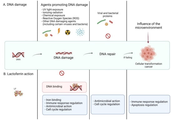 3.1. Lactoferrin as a Human Genome “Guardian” (Indirect and Direct Action)