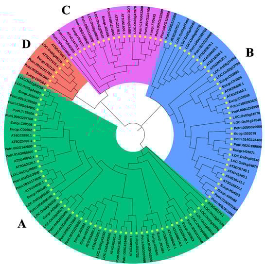 - Li, Q.; Clemente, H.S.; He, Y.; Fu, Y.; Dunand, C. Global evolutionary analysis of 11 gene families part of reactive oxygen species (ROS) gene network in four Eucalyptus species. Antioxidants 2020, 9, 257. [Google Scholar] [CrossRef] [Green Version]