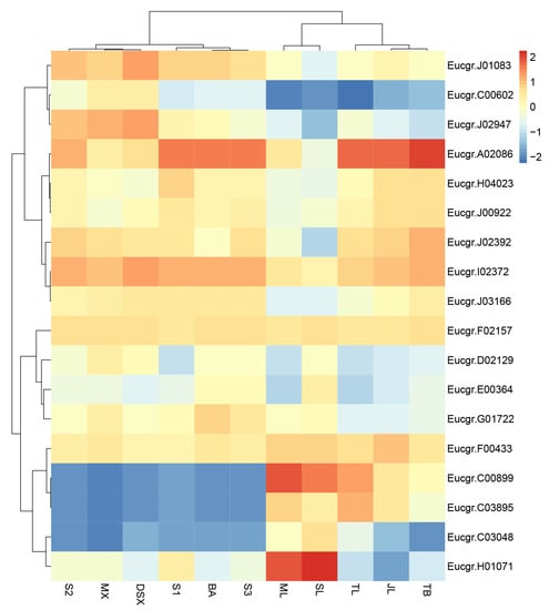 - Fan, C.; Yao, H.; Qiu, Z.; Ma, H.; Zeng, B. Genome-wide analysis of Eucalyptus grandis WRKY genes family and their expression profiling in response to hormone and abiotic stress treatment. Gene 2018, 678, 38–48. [Google Scholar] [CrossRef]