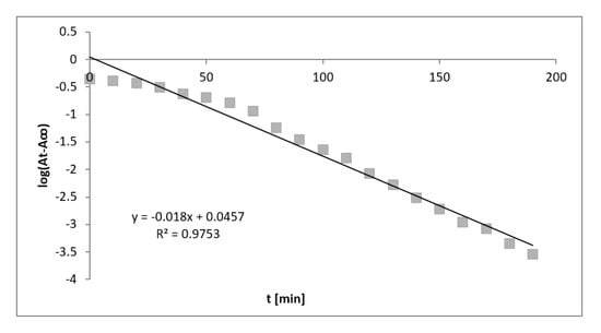 The stability of new substances is a key parameter that determines the effectiveness of a drug as well as its safety. Therefore, the most active phthalimide derivative 4c was assessed for chemical stability in an aqueous phosphate buffer at pH 7.3 simulating physiological conditions using spectrophotometric method (Table 5). In the tested phosphate buffer, a decrease in the maximum absorbance at 305 nm was observed over time, which indicates a spontaneous hydrolysis of the compound 4c (Figure 2 and Figure 3). The calculated half-life (t1/2) value is 38.5 min, which proves the high stability of the compound under physiological pH conditions.