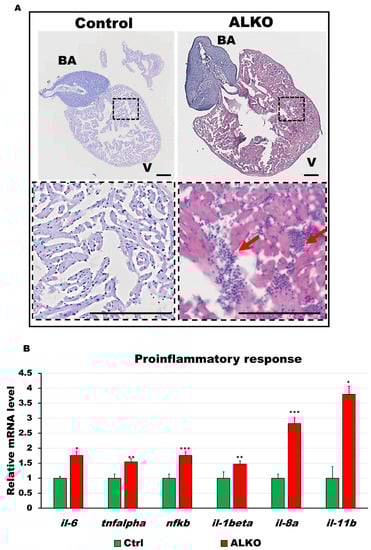 2.5. Hypertrophic Heart in ALKO Adults due to Activated Immune Response