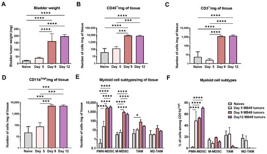 Domingos-Pereira, S.; Sathiyanadan, K.; Polak, L.; Haefliger, J.-A.; Schmittnaegel, M.; Ries, C.H.; Jichlinski, P.; Roth, B.; Derré, L.; Nardelli-Haefliger, D. Tumor-Microenvironment Characterization of the MB49 Non-Muscle-Invasive Bladder-Cancer Orthotopic Model towards New Therapeutic Strategies. Int. J. Mol. Sci. 2023, 24, 123. https://doi.org/10.3390/ijms24010123