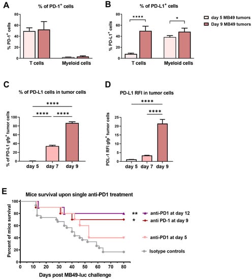 2.1. Characterization of the Immune Cell Infiltration in MB49 Bladder Tumors and Model Evaluation