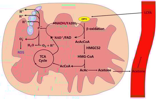 Acetoacetyl (AcAc) directly results in the formation of ketone bodies, which are released into the plasma [28,234,235]. As these ketones are weakly soluble, they are transported through blood vessels to the lungs and are then exhaled [236] (Figure 2).