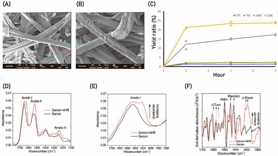 Figure 1F). Compared with degumming at low temperature (37 °C to 70 °C), degumming at high temperature (100 °C to 120 °C) markedly increased the yield ratio of sericin (