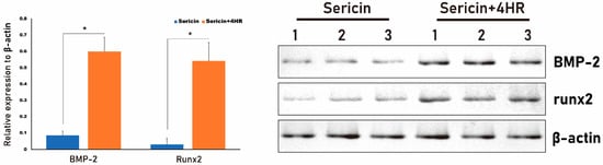 Figure 2D). Therefore, the increased expression of BMP-2 is likely due primarily to 4HR-bound sericin. Additional studies, however, are required to confirm these findings.
