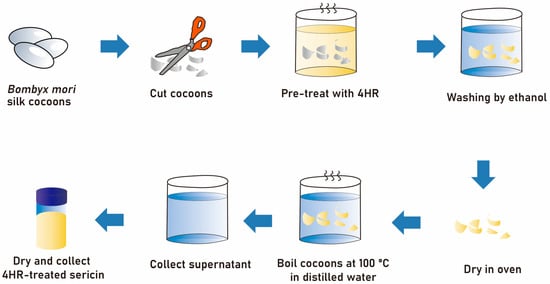 5]. Many types of degumming processes have been used to remove silk sericin from silk fibroin, with these processes differing depending on the intended application of silk sericin. As a biomedical resource, silk sericin can be released from silk mats in fragmented form, which can be used for bone regeneration [
