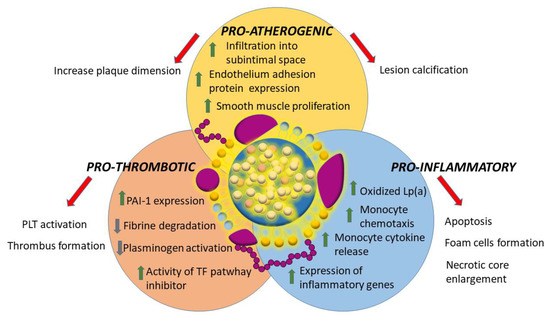 The underlying mechanisms through which Lp(a) can determine vascular damage are multiple and can be synthesized in three categories: pro-inflammatory, pro-atherogenic and pro-thrombotic (Figure 2).