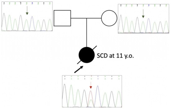 Proband’s DNA was extracted from the venous blood during the molecular autopsy examination, and DNA samples of the parents were extracted from dry venous blood spots on DNA collection filters. Genomic DNA was extracted from biological samples using Thermo ScientificTM Genomic DNA Purification kits (Thermo ScientificTM is part of Thermo Fisher Scientific, Waltham, MA, USA) and following the manufacturer’s protocol. A genetic study for the proband was performed by target genes panel sequencing using the semiconductor sequencing platform PGM IonTorrent (Thermo Fisher Scientific, Waltham, MA, USA). Targeted genes mini panel “Hypertrophic cardiomyopathy” included ACTC1, LDB3, MYBPC3, MYL2, MYL3, MYH7, TAZ, TPM1, TNNI3, and TNNT2. Oligoprimers for this gene panel were designed using the Ion Ampliseq Designer® online tool (Thermo Fisher Scientific, Waltham, MA, USA). The reads were preprocessed using Torrent Suite Software 5.6.0 and the variant annotation web server Ion Reporter 5.12 (Thermo Fisher Scientific, Waltham, MA, USA). NGS sequencing reads were visualized using the Integrative Genomic Viewer (IGV) tool [41] with hg19 as a reference genome. All genetic findings detected by NGS in the proband were validated by capillary Sanger sequencing using a 3130 Genetic Analyzer (Thermo Fischer Scientific, Waltham, MA, USA).