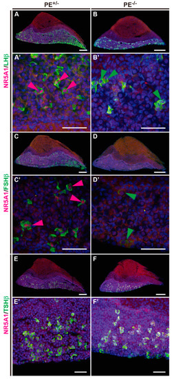 - Pacini, V.; Petit, F.; Querat, B.; Laverriere, J.N.; Cohen-Tannoudji, J.; L’Hôte, D. Identification of a pituitary ERα-activated enhancer triggering the expression of Nr5a1, the earliest gonadotrope lineage-specific transcription factor. Epigenet Chromatin 2019, 12, 48. [Google Scholar] [CrossRef]