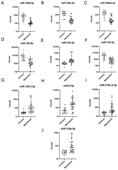 Tsakonas, G.; Koulouris, A.; Kazmierczak, D.; Botling, J.; Ortiz-Villalon, C.; Nord, H.; Lindskog, M.; Sandelin, M.; Micke, P.; Hydbring, P.; et al. Matched Analyses of Brain Metastases versus Primary Non-Small Cell Lung Cancer Reveal a Unique microRNA Signature. Int. J. Mol. Sci. 2023, 24, 193. https://doi.org/10.3390/ijms24010193