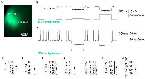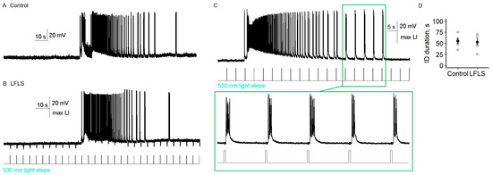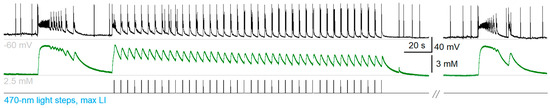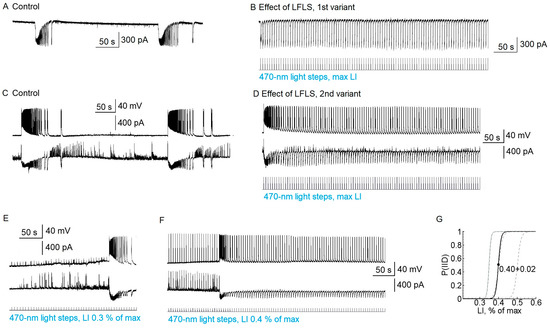 19]). The threshold light intensity (LI) causing the depolarization of pyramidal neurons was 0.41 ± 0.04% of the maximum intensity (
