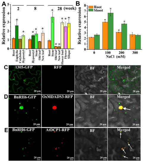 2.1. BnRH6 Is Transcriptionally Upregulated under Salt Stress