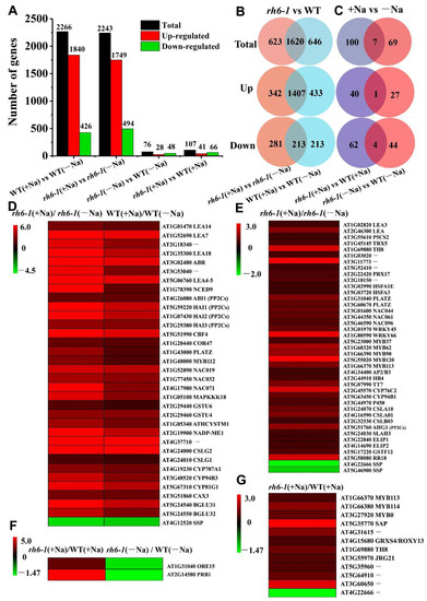 4.8. Construction of Salt Treated cDNA Libraries of Arabidopsis rh6-1 and RNA-Sequencing