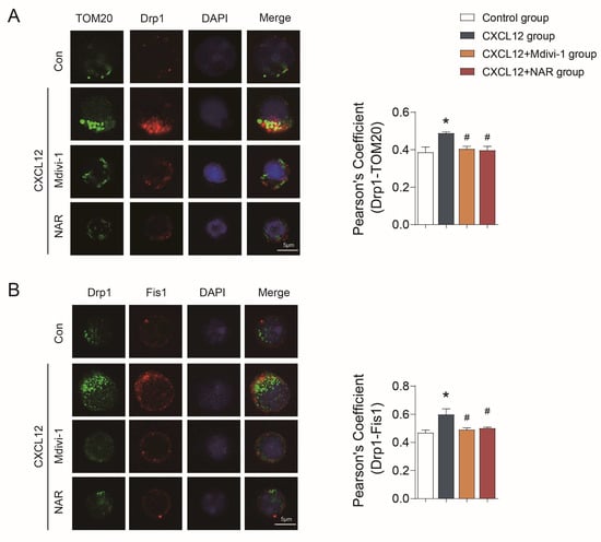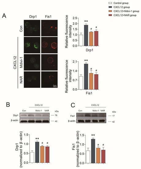 - Cell grouping: CD4+ T lymphocytes were divided into the following four groups: CD4+ T lymphocyte, CD4+ T lymphocyte+CXCL12, CD4+ T lymphocyte + CXCL12 + Mdivi-1, and CD4+ T lymphocyte + CXCL12 + NAR. NAR treatment was applied overnight at 100 µM [59], while Mdivi-1 treatment was applied overnight at 50 µM, using 0.1% DMSO as vehicle control [67].