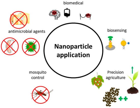 In the last few decades, research on the development of alternative nanoparticle (NP) production has attracted a great deal of attention due to the plethora of novel applications of NPs in various industries. NPs are solid particles with a size range between 1 and 100 nm in at least one dimension. Due to their small size, they have a large surface area that provides them with novel properties [1]. Metal-containing NPs were shown to have antimicrobial and anti-cancer properties, catalytic and photocatalytic activity, and interesting optical and magnetic properties [2]. These properties of NPs are size specific since with a decrease in size there is an increase in the active surface area of the NPs. Hence, the antimicrobial and other properties of NPs often increase with a decrease in NP size [3]. However, this is not true for all applications. Kusiak-Nejman et al. [4] found in their experiment that when ZnO NPs of sizes 23, 27, 32, 44, 57, and 71 nm were applied to photocatalytic degradation of phenol in a water solution, the largest 71 nm-sized ZnO NPs had the highest photocatalytic activity, and the increase in size correlated with increased photocatalytic activity. Thus, even though there is a general rule of higher activity in smaller NPs, for each application, the most suitable size of NPs needs to be evaluated depending on the required properties that can be fine-tuned with NP size.