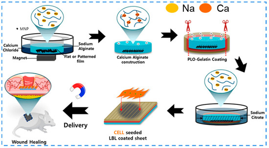- Noh, M.; Choi, Y.H.; An, Y.H.; Tahk, D.; Cho, S.; Yoon, J.W.; Jeon, N.L.; Park, T.H.; Kim, J.; Hwang, N.S. Magnetic Nanoparticle-Embedded Hydrogel Sheet with a Groove Pattern for Wound Healing Application. ACS Biomater. Sci. Eng. 2019, 5, 3909–3921. [Google Scholar] [CrossRef] [PubMed]