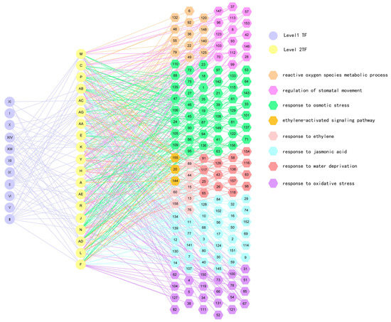 4.4. Construction of Multilayered Hierarchical Gene Regulatory Network in Response to Drought Stress