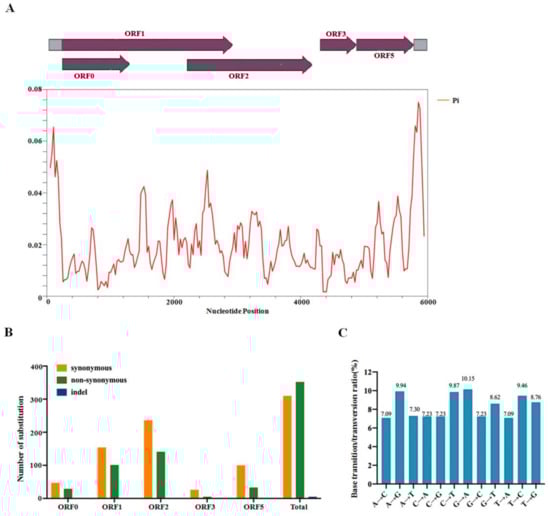 - Sun, S.R.; Chen, J.S.; He, E.Q.; Huang, M.T.; Fu, H.Y.; Lu, J.J.; Gao, S.J. Genetic variability and molecular evolution of maize yellow mosaic virus populations from different geographic origins. Plant Dis. 2021, 105, 896–903. [Google Scholar] [CrossRef]