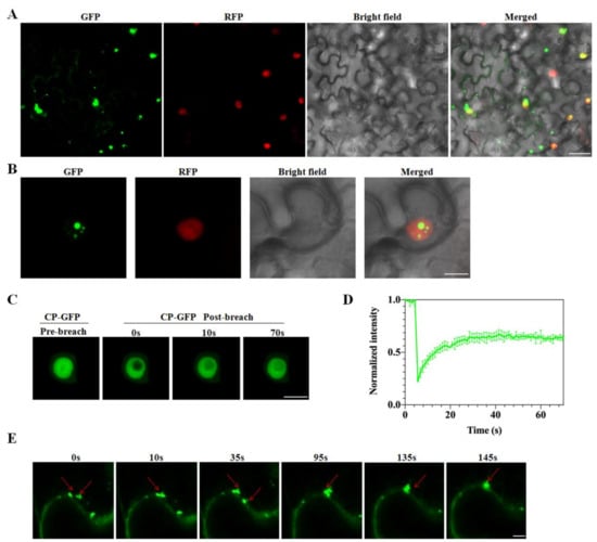 - Brown, S.L.; Garrison, D.J.; May, J.P. Phase separation of a plant virus movement protein and cellular factors support virus-host interactions. PLoS Pathog. 2021, 17, e1009622. [Google Scholar] [CrossRef] [PubMed]