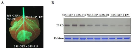 - Fusaro, A.F.; Correa, R.L.; Nakasugi, K.; Jackson, C.; Kawchuk, L.; Vaslin, M.F.S.; Waterhouse, P.M. The enamovirus P0 protein is a silencing suppressor which inhibits local and systemic RNA silencing through AGO1 degradation. Virology 2012, 426, 178–187. [Google Scholar] [CrossRef]