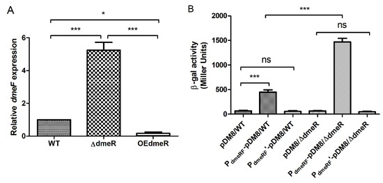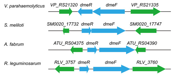 2.1. Identification of the DmeRF System in V. parahaemolyticus