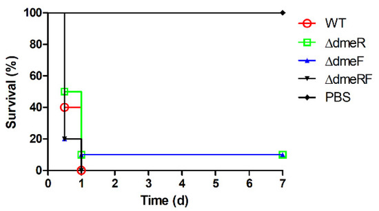 2.6. The DmeRF System Is Not Required for V. parahaemolyticus Virulence in Mice