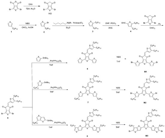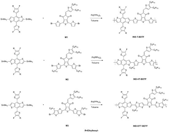 3.2.12. Synthesis of IND-T-BDTF, IND-HT-BDTF and IND-OTT-BDTF
