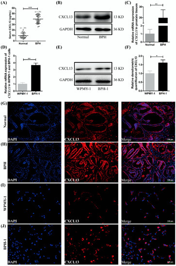 Chicago/Turabian StyleLiu, Daoquan, Mingzhou Li, Xun Fu, Shu Yang, Zhen Wang, Jianmin Liu, Yan Li, Yongying Zhou, Pengfei Ren, Yuhang Guo, and et al. 2023. "Changes in the Expression and Functional Activities of C-X-C Motif Chemokine Ligand 13 (CXCL13) in Hyperplastic Prostate" International Journal of Molecular Sciences 24, no. 1: 56. https://doi.org/10.3390/ijms24010056