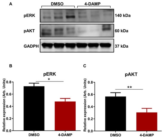 2.3.7. 4-DAMP Treatment Inhibits Phosphorylation of AKT and ERK In Vivo