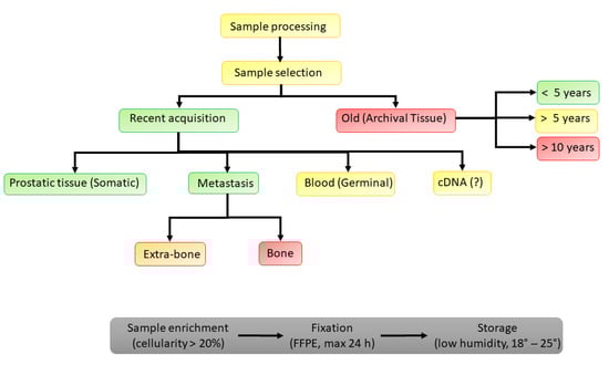 - Somatic determination on a metastatic site, in particular, bone, may be associated with various biases (in 30% of cases), as well as possible side effects. On the other hand, the de novo determination on the prostate is not always possible at the time of the diagnosis of metastatic disease. The reliability of the analysis on paraffin preparations is conditioned by the temporal distance (good if <5 years and bad if >10 years).