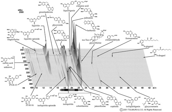 Three-dimensional high-performance liquid chromatography profile of orento (provided by Tsumura, Tokyo, Japan).
