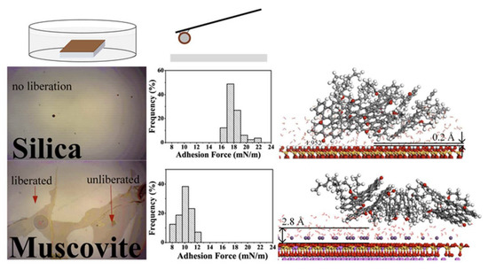 - Li, X.; Bai, Y.; Sui, H.; He, L. Understanding the Liberation of Asphaltenes on the Muscovite Surface. Energy Fuels 2017, 31, 1174–1181. [Google Scholar] [CrossRef]