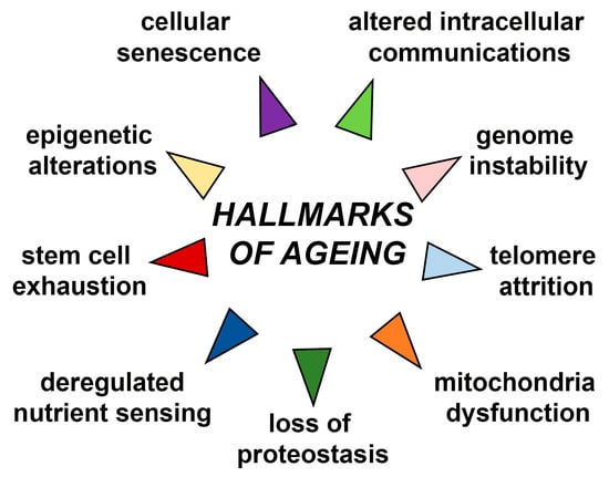 Schematic representation of nine major hallmarks of ageing. The scheme is based on the previously reported publication [2].