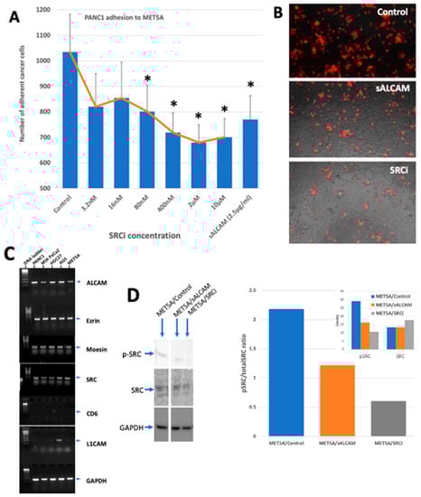 2.7. The Interaction of Tumour-Mesothelial Cells Was Primarily Due to the Action of ALCAM and Mediated by the SRC Pathway