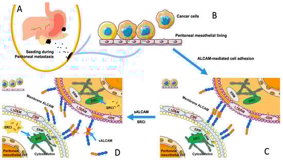 In the present study, we first explored if expression levels of ALCAM may have an impact on the peritoneal metastases of the patients with gastric and pancreatic cancers. Following showing a positive correlation in the clinical settings, we went to create cell models of gastric and pancreatic cancer cells as well as mesothelial cells with altered levels of ALCAM expression. Using these cell models, we studied the roles of ALCAM in cancer cells and mesothelial cells during metastasis and the interplay between these cells and disclosed the potential role the SRC kinase in this interaction.