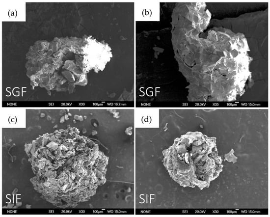 2.9. SEM Characterization after Soaking in SGF and SIF