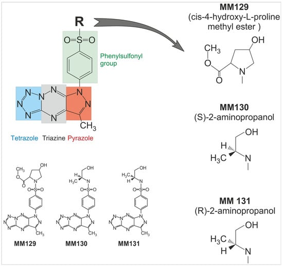 Chemical structure of the three investigated sulfonamides—MM129, MM130, and MM131.