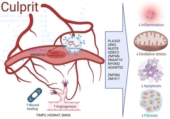 Using the miRDB website, predicted gene targets for miR-483-5p are available for studying different tissues, including the heart. We distinguished gene targets and mechanisms applicable to chronic and acute MI states using this site and the NCBI websites, Gene Ensembl.