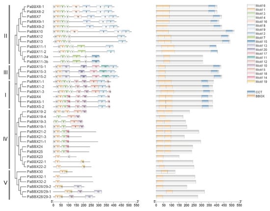 | PaBBX11-3a | PaB1G042960 | 71,884,034–71,889,372 | 311 | 35.02 | 5.04 |