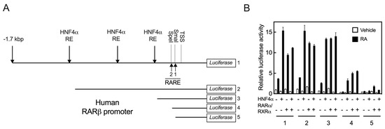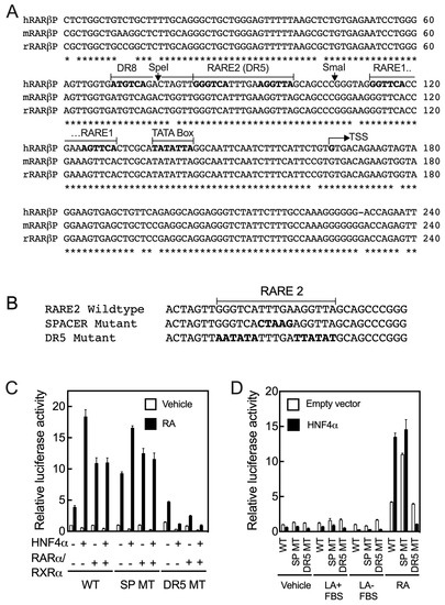 2.3. HNF4α Response Element(s) May Reside within the RARE Sites in the Promoter of the RARβ Gene