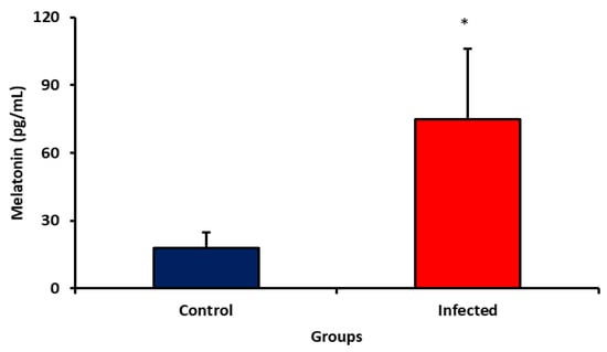 | IL-17 | 421.5 ± 70.2 | 508.0 ± 77.5 * | t = 2.5314 p = 0.0309 |