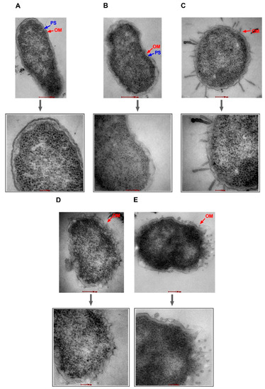 4.7. Transmission Electron Microscopy to Examine the Outer Membrane